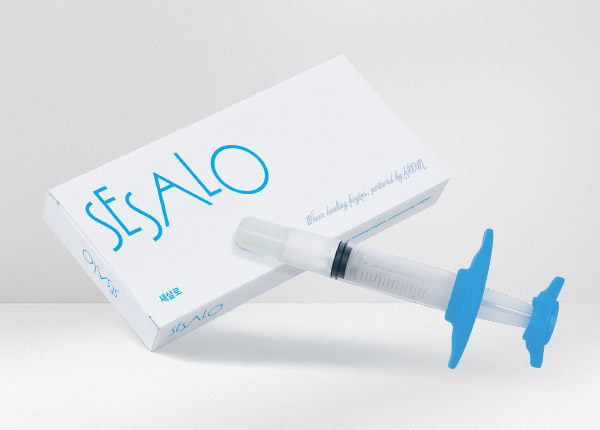 기술 조직재생의 새로운 길, 초미세분말 인체진피 ECM 새살로(SESALO)란? Ultra-Fine Micronized hADM100μm 이하(평균입자크기, 70μm) 사이즈초미세 입자화한 파우더형 인체조직재료주사가 가능한 실제피부의 인체진피 성분(ECM)으로 구성인체진피 성분을 상처에 직접 주입 제품명 새살로(SESALO) 평균크기 100μm 이하 분류 인체조직 유효기간 5년 규격 150mg 유의사항 1~30Cº 실온 보관 성분 Ultra-Fine Micronized hADM powder (초미세분말 무세포동종진피) 주요성분 실제피부 유래 초미세분말 인체진피 ECM 피부 세포를 지지하고 조직의 구조를 유지하는 진피성분의 집합체. 구조적 지지, 세포 간 신호전달 역할을 하며 세포가 주변 조직과 상호작용을 할 수 있는 기반 제공. 작용기전 손상된 피부에 직접 주입 시, 즉각적인 피부이식 및 재생효과를 유도 주입된 초미세입자가 주변 섬유아세포를 자극해 세포활성화를 촉진 환자의 섬유아세포가 초미세입자로 이동하여 새로운 조직 형성 실험결과 동물실험을 통한 조직재생효과 확인